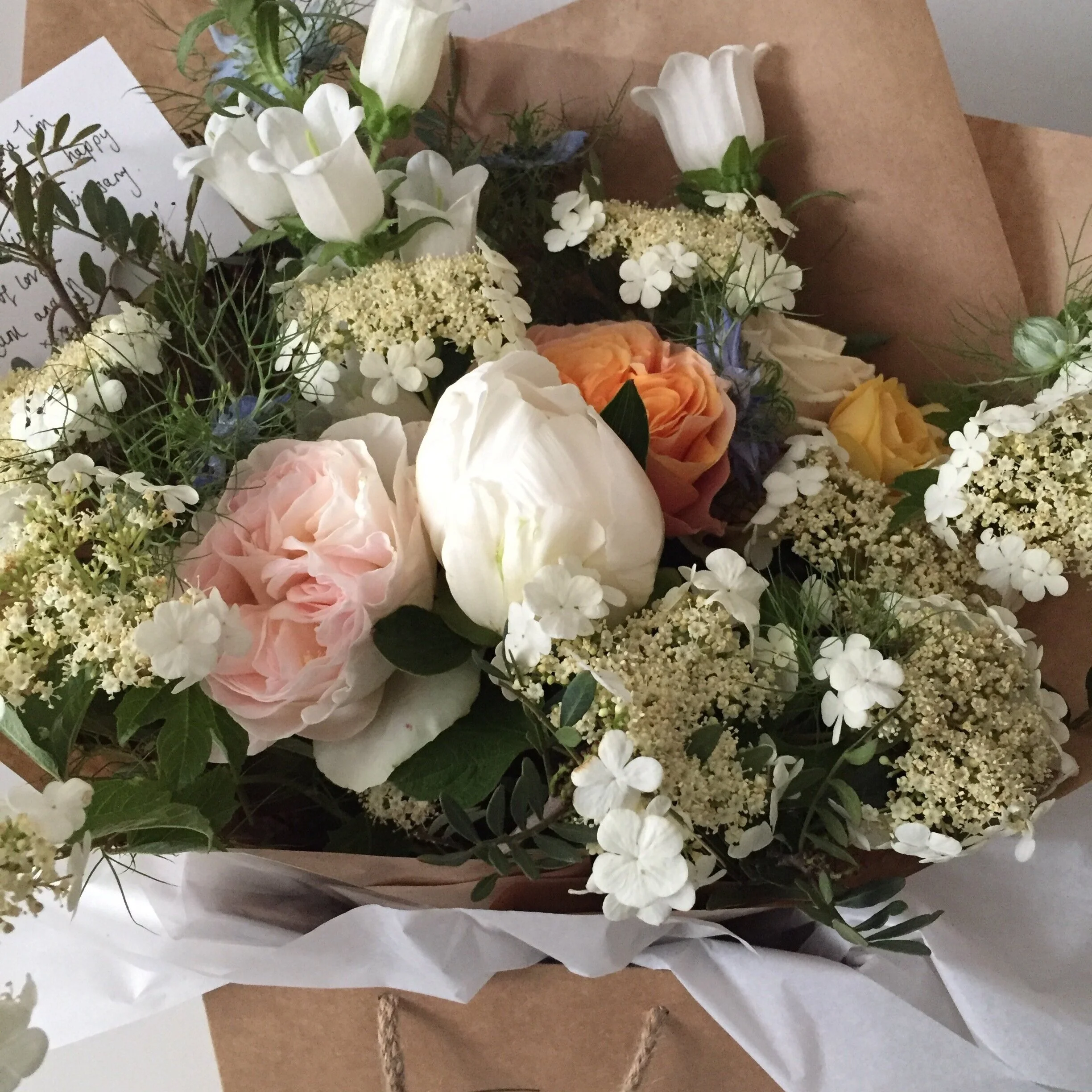 Small bunch of flowers delivered.